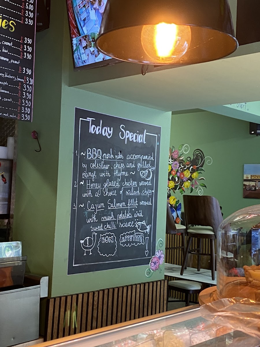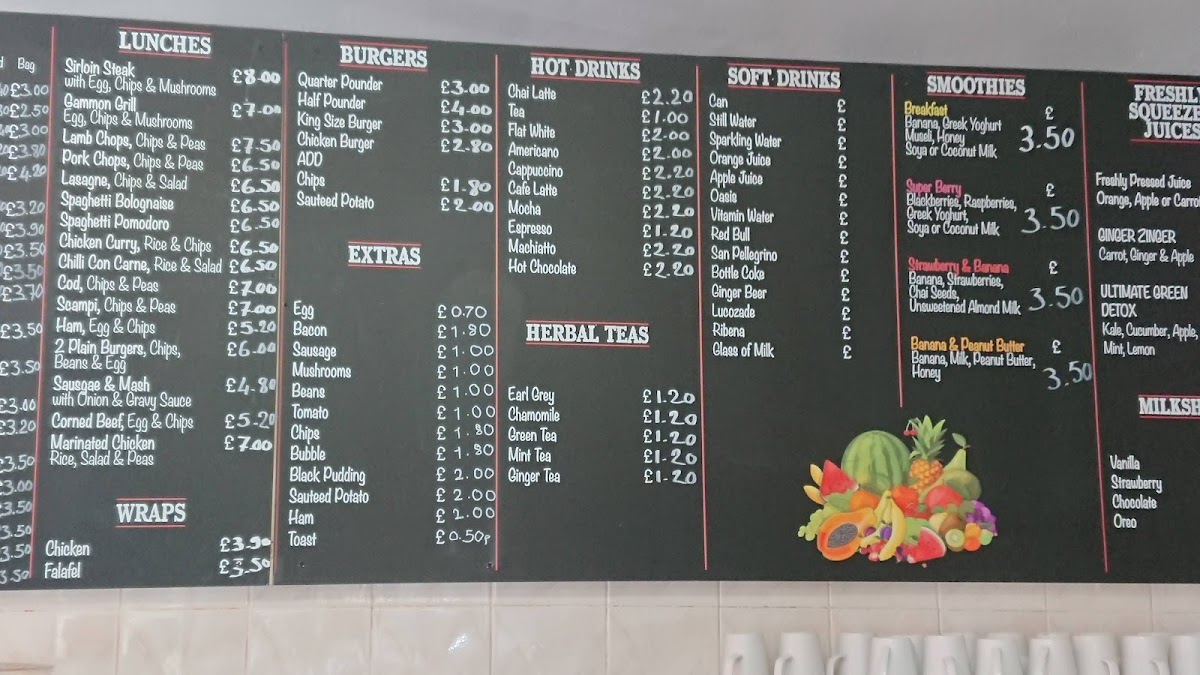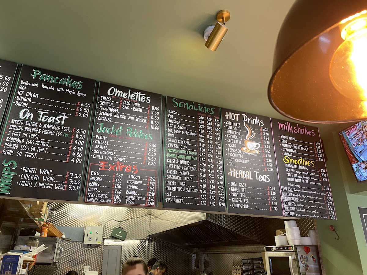 Morning visitors often enjoy the traditional set breakfasts featuring eggs, bacon, sausages, and beans, alongside freshly brewed coffee or a cappuccino. Those seeking lighter or vegetarian options can find thoughtful choices such as poached eggs with avocado or a fresh grilled chicken salad. The menu also includes comforting midday bites like bacon rolls, jacket potatoes with various toppings, and carefully prepared omelettes.